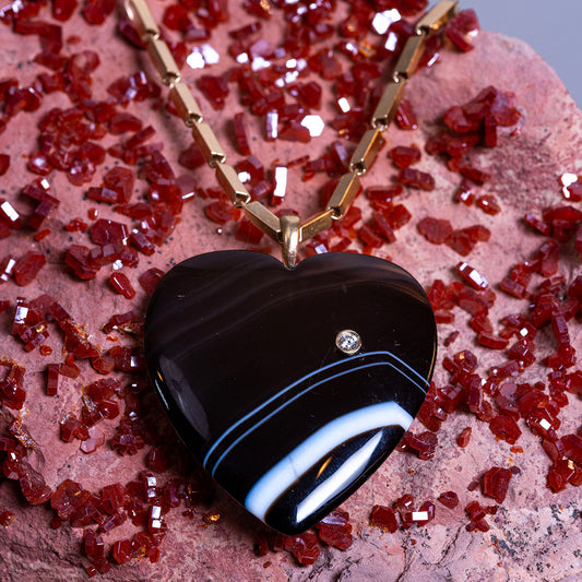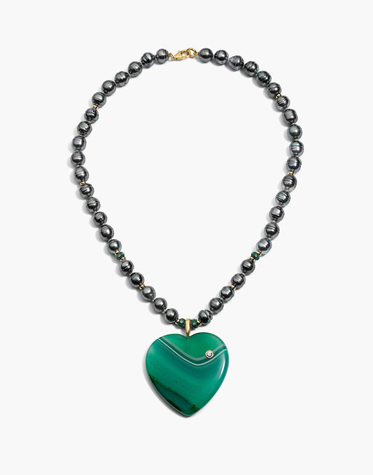 Ceramic and 14K Gold Necklace with Antique Onyx and Pearl Pendant