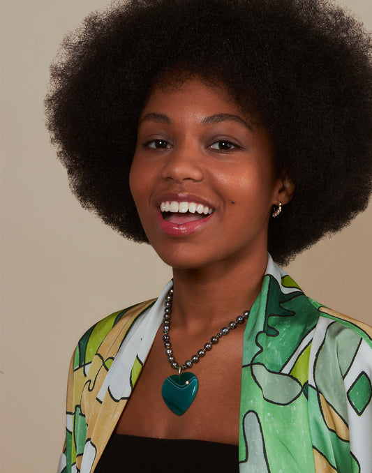 Grey Pearl & Green Onyx Heart Necklace